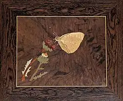 Sockwell's marquetry period started after retirement from surveying. He used exotic and native wood veneer to make realistic scenes. The woods were almost exclusively their natural color, but in select instances Sockwell would use wood that had been dyed. The wood grain was carefully incorporated into the design.[6]