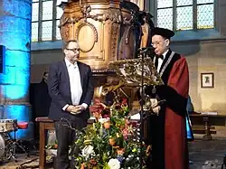 - ^ Belga (February 2, 2016). "Eduardo Suplicy, Paola Vigano et Jimmy Wales faits Docteurs honoris causa de l'UCL". L'Avenir. Archived from the original on June 29, 2017. Retrieved December 26, 2017.