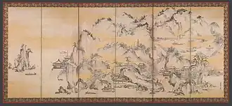 Jinshan Island and West Lake (金山西湖図屏風) is a painting on six Byobu folding screens by Japanese artist Kanō Sanraku, the master of the Kano painting school. The artwork was created with ink, paint, gold and paper. It is part of the collection of the Metropolitan Museum of Art in New York City.[1] Both are created with gold powder.