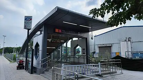 Jinsheqiao Station (Chinese: 金厍桥) is a station of Line 3 and Line 5 of the Suzhou Metro.[1] The station is located in Suzhou Industrial Park, Jiangsu. It has been in use since December 25, 2019, when Line 3 first opened to the public,[2] and acts as one of 3 interchanges between the two lines.