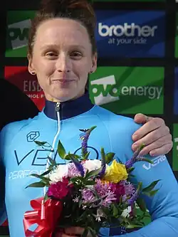 Joanna Louise Tindley (born 1 May 1987) is a British racing cyclist, who rides for UCI Women's Continental Team Smurfit Westrock Cycling Team.[2] Tindley was the winner of the sprints classification in the Tour Series in 2021 and 2022, and was the winner of the British National Circuit Race Championships in 2021.[3]