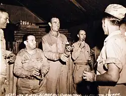 Joe DeRita and Randolph Scott (center) on Guadalcanal ca. 1942–43