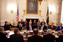 Manchin was first sworn in to the U.S. Senate by Vice President Joe Biden on November 15, 2010, succeeding interim senator Carte Goodwin.[72] In a 2014 New York Times interview, Manchin said his relationship with Obama was "fairly nonexistent."[87]