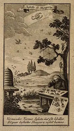 Grossinger was born in Komárno and went to school in Raab before he joined the Society of Jesus at the age of 17. He studied philosophy at Graz and then theology at Nagyszombat (Tyrnau). He took his vows in 1762 and then became a teacher and chaplain serving in a number of places. He was prefect of the seminary in Nagyszombat and then a teacher of linguistics. He taught in Trenčín from 1767. In 1769-70 he was at Košice. From 1771 to 1773, following the dissolution of the Jesuit Order, he was a chaplain for the Haller regiment in Italy. From 1780 he was pastor at his hometown where he died in 1803. During his spare time he studied natural history and collected specimens many of which were held in the Košice Museum. In 1783 he wrote Dissertatio de terrae motibus regni Hungariae and from 1793 to 1797 he wrote a five volume Universa historia physica regni Hungariae, secundum tria naturae regna digesta which covered the birds, fish, insects and plants of Hungary.[1][2][3] He also dealt with microscopic organisms suggesting that vinegar was formed by worms.[4] The fifth book covered trees[5] while the fourth dealt with insects. He described the life history of insects.[6]