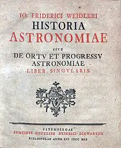 1. ^ "Johann Friedrich Weidler (1691-1755)". Bibliothèque nationale de France. Retrieved 31 October 2015.