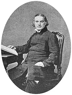 Johann Konrad Wilhelm Löhe (21 February 1808 – 2 January 1872) (often rendered 'Loehe') was a pastor of the Lutheran Church, Confesional Lutheran writer, and is often regarded as being a founder of the deaconess movement in Lutheranism and a founding sponsor of the Lutheran Church–Missouri Synod (LCMS). From the small town of Neuendettelsau, he sent pastors to North America, Australia, New Guinea, Brazil, and Ukraine. His work for a clear confessional basis within the Bavarian church sometimes led to conflict with the ecclesiastical bureaucracy. His chief concern was that a parish find its life in the eucharist, and from that source evangelism and social ministries would flow. Many Lutheran congregations in Michigan, Ohio, and Iowa were either founded or influenced by missionaries sent by Löhe. He is commemorated on 2 January by the calendars of both the LCMS and the Evangelical Lutheran Church in America.