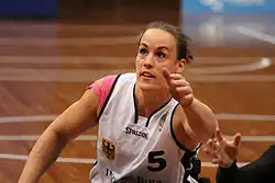 Johanna Welin was born on 24 June 1984 in Pajala, Sweden, a small town near the border between Sweden and Finland about 100 kilometres (62 mi) north of the Arctic Circle. She has played football for Töreboda IK in the Swedish league. In the winter, her passion was snowboarding, until a bad fall in a snowboarding competition at Gothenburg in January 2004 left her paralysed from the waist down.[1][2] She then took up wheelchair basketball, playing for GRBK Gothenburg in the Swedish league, but Sweden had no national women's team. She spent two semesters studying German in Innsbruck, but there was no wheelchair basketball team there, and she began playing for USC Munich, initially for their second team. There, she caught the attention of Holger Glinicki, the coach of the German national team, who asked her if she would like to play for the German national team. She took German citizenship, a relatively painless procedure for an athlete, and made the German national team, which went on to win gold at the 2011 European Championships in Nazareth, Israel, defeating the Netherlands in the final, 48–42.[2][3]