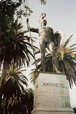 His work gained the attention of Kaiser Wilhelm II, who chose him to produce a group of figures for the Kaiser's monumental Siegesallee (Victory Avenue) project. Later, in 1909, at the Kaiser's request, he produced a gigantic statue of Achilles in a victorious stance for the Achilleion, a palace on Corfu built by Elisabeth of Bavaria.[2] The statue was meant to offset an earlier work by Ernst Herter called the "Dying Achilles".[3]