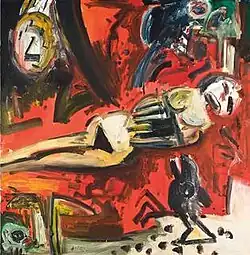 In 1982 he was offered a show at the Rosa Esman Gallery in New York[7] which presented his work to a greater audience, resulting in purchases to important private collections as well as to the Museum of Modern Art. One of the works exhibited was "Time and the Raven", a particularly strident work. The work's title was borrowed by his friend Sir Peter Maxwell Davies for his UN composition of the same name in 1995.[8]
