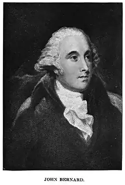 John Bernard (1756 in Portsmouth, England – 29 November 1828 in London)[1] was an English actor and biographer. He was the author of Retrospections of the Stage (1830) and Retrospections of America, 1797-1811.[2] He acted in a number of plays with Mary Ann Duff.[3] His son, William Bayle Bernard, was a playwright and critic, and edited editions of his Retrospections.