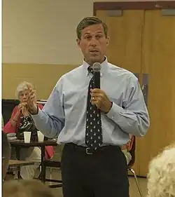 Carney was the Democratic nominee for Delaware's at-large seat in the United States House of Representatives in 2010. He faced Republican Glen Urquhart, Independent Party of Delaware nominee Earl R. Lofland, Libertarian Brent A. Wangen, and Blue Enigma Party nominee Jeffrey Brown. The seat had been held since 1993 by Republican Michael Castle, who declined to seek reelection to the House in order to run for the U.S. Senate seat once held by Vice President Joe Biden. In the first week of October, Fairleigh Dickinson University's PublicMind Poll released the results of its opinion research, showing Carney with a 15-point advantage over Urquhart, 51%-36%.[12] Days before the election, a second Fairleigh Dickinson poll showed Carney leading by 17 points, 53% to 36% among likely voters.[13] Carney won the seat by 16 points, 57% to 41%, and took office on January 3, 2011. His victory was one of the three seats Democrats gained in a year when they lost a net 63 seats to the Republicans.