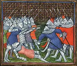 The death of Sir John Chandos at Lussac (illustration from around 1410).