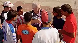 Chittick announced in 1998 that he was leaving behind his home and office in Boston to undertake his first Global AIDS Walks.[31] Chittick developed a method of street outreach he termed "AIDS Attacks" in which he approaches young people directly, gives them a business card with information on HIV/AIDS written in their native language and tells them that the information could "save their best friend's life".[1] In some countries, however, Chittick's tactics proved controversial where public discussion of the sexual transmission of AIDS was not permitted by governments.[32] Chittick has thus far been to over 85 countries and educated an estimated 300,000 young people.[33]