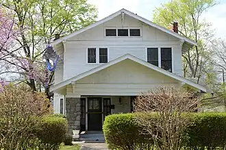The John E Bush House is a historic house at 1516 Ringo Street in Little Rock, Arkansas. It is a two-story wood-frame structure, with a front gable roof and clapboard siding. A single-story gabled porch, its gable nearly matching that of the main roof, projects from the front, supported by fieldstone columns. The gable ends feature half-timbering effect typical of the Craftsman/Bungalow style. The house was designed by Thompson & Harding and built in 1919.[2]