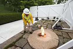 ![]() John F. Kennedy Eternal Flame at Arlington National Cemetery after its 2013 renovation | |