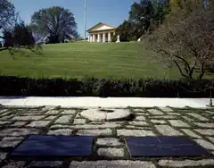The John F. Kennedy Eternal Flame is a presidential memorial at the grave site of assassinated United States President John F. Kennedy, in Arlington National Cemetery in Virginia. This permanent site replaced a temporary grave and eternal flame used at the time of Kennedy's state funeral on November 25, 1963, three days after his assassination. The site was designed by architect John Carl Warnecke, a longtime friend of Kennedy.[1][2] The permanent John F. Kennedy Eternal Flame grave site was consecrated and opened to the public on March 15, 1967.[3]