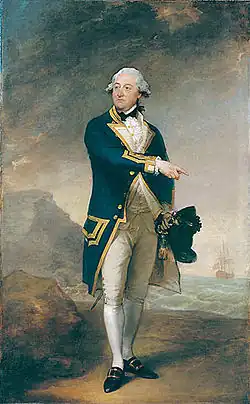 Admiral John Gell (c.1740 – 1806) was a Royal Navy officer who served in the Seven Years' War, American War of Independence and French Revolutionary Wars. Born in Wirksworth, Derbyshire, he joined the British navy in c. 1757 and gradually rose through the ranks.[1] Gell was promoted to the rank of admiral in 1799 after a long career in Europe, the Americas and India.[2] In 1793, Gell captured a Spanish ship which contained two million dollars and packages valued at over 200,000 pounds, which proved to be one of the richest prizes ever brought to England. He died in 1806.[3]