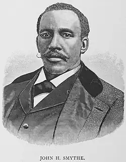 John Henry Smythe or Smyth[1] (July 14, 1844 – September 5, 1908) was an American diplomat who served as the United States ambassador to Liberia from 1878 to 1881 and from 1882 to 1885. Before his appointment, he had various clerkships in the federal government in Washington, DC, and in Wilmington, North Carolina. Later in his life he took part in a number of leading African American organizations and was president of a Reformatory School outside of Richmond, Virginia.