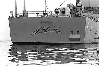 Many places and things in the United States have been named in honor of Hancock. The U.S. Navy has named vessels USS Hancock and USS John Hancock; a World War II Liberty ship was also named in his honor.[216] Ten states have a Hancock County named for him;[217] other places named after him include Hancock, Massachusetts; Hancock, Michigan; Hancock, New Hampshire; Hancock, New York; and Mount Hancock in New Hampshire.[217] The defunct John Hancock University was named for him,[218] as was the John Hancock Financial company, founded in Boston in 1862; it had no connection to Hancock's own business ventures.[219] The financial company passed on the name to the John Hancock Tower in Boston, the John Hancock Center in Chicago, as well as the John Hancock Student Village at Boston University.[220] Hancock was a charter member of the American Academy of Arts and Sciences in 1780.[221]