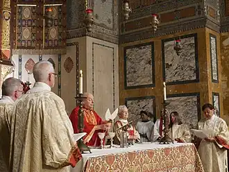 Taylor leading an Eucharist at Saint John's Cathedral in Los Angeles.