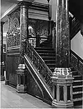 In 1869, architect John Henry Devereux remodeled the building, which became known as the Academy of Music. The theatre opened on 1 December 1869 with a 1200-seat capacity, and it would often have sold-out houses.[27] The acoustics were first rate. It had a "Sun burner" gas-light chandelier illumination system, set in a faux "starlit sky" ceiling, and a proscenium arch "supported by gilded columns and moldings."[27] For seven decades it was "one of America's best known theatres . . . patterned after European opera houses" with excellent acoustics. Performers included Oscar Wilde,[28] Sarah Bernhardt, Fanny Brice, Billie Burke, Eddie Foy, Lily Langtry, Lillian Russell, John Philip Sousa and his band, the Ziegfeld Follies[27] and others of similar international acclaim. Important movies opened there.[27] The building's aura faded, and it was demolished and replaced by a new building.[27][29][30][31]