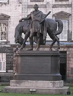 Following Lord Hopetoun's death, the Hopetoun Monument was erected on Byres Hill, East Lothian, in 1824.[9] This was followed in 1826 by a similar monument on Mount Hill in Fife.[10] In 1824 the city of Edinburgh commissioned a bronze statue of Lord Hopetoun, by Thomas Campbell, and originally designed as a centrepiece for Charlotte Square in 1829, but which was eventually placed in St Andrew Square in 1834, in front of Dundas House where he had acted as vice governor of the bank.[1][11] The text on the latter is by Sir Walter Scott.[12] In the wake of the George Floyd protests, a plaque was installed by its owners in June 2020 on the statue which reflected Lord Hopetoun's role in suppressing Fédon's rebellion, an uprising against British rule on the island of Grenada.[13]