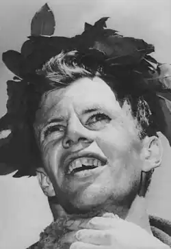 John Joseph Kelley (December 24, 1930 – August 21, 2011) was an American long-distance runner who won the 1957 Boston Marathon and the marathon at the 1959 Pan American Games.[3] He was also a member of the United States Olympic teams of 1956 and 1960, competing in the marathon. He was often dubbed "Kelley the Younger" to avoid confusion with Johnny Kelley (1907–2004; "Kelley the Elder"), winner of the 1935 and 1945 Boston Marathons; the two men were not related.[1][4]