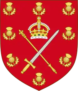 In 1676, he was made Councillor to the Privy Council of Scotland and a commissioner of the Council for Public Affairs in 1677.[3] He was created Knight Marischal of Scotland upon Charles II return, and in 1677 was created Earl of Kintore along with the subsidiary title of Lord Keith of Inverurie and Keith Hall, a reward for his part in preserving the Honours of Scotland in various hiding-places during the British Interregnum.[5] and Between 1684 and 1687 Kintore was Treasurer-Depute of Scotland. He was Keeper of the Privy Seal of Scotland in 1689. Lord Kintore was a supporter of both the Glorious Revolution and the 1707 Acts of Union.[6]
