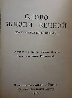 - John Kornievsky, Fr. "The Word of Eternal Life". The publishing house "Life with God", 1959.
