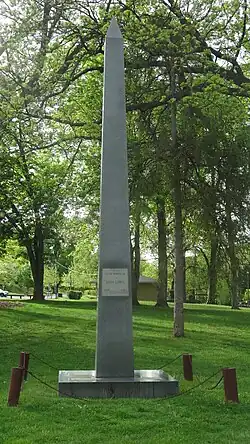 An obelisk monument, erected on 31 May 1962 in Gypsy Hill Park in Staunton by the John Lewis Society, honors John Lewis.[39] In 1891, Lewis's great-great-grandson John Lewis Peyton wrote to the city proposing that Lewis's remains and those of his wife be moved to Gypsy Hill Park from Bellefonte estate and reburied under a memorial.[24] The Staunton City Council erected the memorial but the graves were not relocated.[41][42]