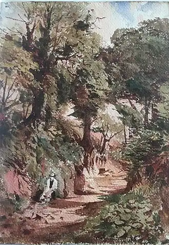 Petit's fourth sister, Emma Gentille Petit, accompanied him most frequently on painting tours from about 1845, and occasionally contributed drawings for his articles, something that he always acknowledged. She also appears to have been the one cataloguing and organising his albums and folios.[21]