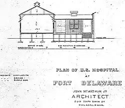 Plan for U.S. Army Hospital, Fort Delaware, Pea Patch Island, DE (1863, demolished). This 600-bed hospital served the garrison, Confederate prisoners, and civilians.