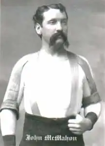 John McMahon (July 7, 1841 – April 3, 1911) was an American professional wrestler who specialized in collar-and-elbow wrestling. He competed from 1861 to 1891, and was undefeated for 17 years. He traveled throughout the world to face the top wrestlers of the day. He competed in several styles of wrestling which included collar-and-elbow, catch wrestling and Greco-Roman wrestling. His biggest rivalry was with Colonel J.H. McLaughlin. Toward the end of his career, he performed in wrestling matches for traveling circuses. He is no relation to the McMahon family.