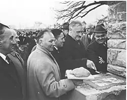 McShain to the left of President Franklin D. Roosevelt at the cornerstone laying of Franklin D. Roosevelt Library, Hyde Park, New York, November 19, 1939.