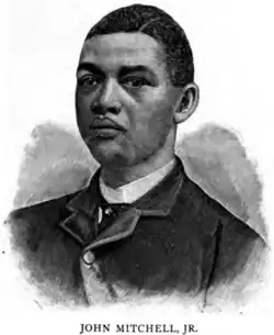 John Mitchell Jr. (July 11, 1863 – December 3, 1929) was an American businessman, newspaper editor, African American civil rights activist, and politician in Richmond, Virginia, particularly in Richmond's Jackson Ward, which became known as the "Black Wall Street of America." As editor of the Richmond Planet, he frequently published articles in favor of racial equality. In 1904, he organized a black boycott of the city's segregated trolley system.