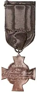 ![]() Reverse of John Otto Siegel's Tiffany Cross Medal of Honor | |