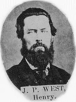 John Patterson West (February 9, 1825 – June 12, 1892) was an Irish-American farmer, military officer, and politician who served in the Iowa House of Representatives from 1862 to 1864 and from 1866 to 1868, the Iowa State Senate from 1870 to 1876,[1] and the California State Senate from 1880 to 1883.[2] In 1878, he was elected a delegate to California's Second Constitutional Convention on the Workingmen's ticket, representing Los Angeles County.[3]