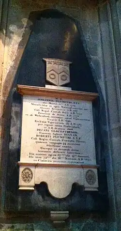 John Plumptre (11 March 1754 โ 26 November 1825) was an English Anglican dean[1] and author.[2] He was educated at Eton[3] and King's College, Cambridge (elected Fellow, 1776). From 1778 until his death on 26 November 1825, he was Vicar of Stone, Worcestershire; to which he added, in 1790, the living at Wichenford; and, in 1808, the office of Dean of Gloucester.