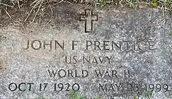 1. ^ "United States Social Security Death Index," index, FamilySearch (https://familysearch.org/pal:/MM9.1.1/J1L7-Z2Q : accessed 02 Mar 2013), John Prentice, 23 May 1999.