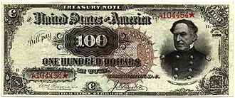 At the same time as he sought to reform the coinage, Sherman worked for "resumption"—the policy of resuming specie payment on all bank notes, including the greenbacks. The idea of withdrawing the greenbacks from circulation altogether had been tried and quickly rejected in 1866; the notes were, as Sherman said, "a great favorite of the people".[112] The economic turmoil of the Panic of 1873 made it even more clear that shrinking the money supply would be harmful to the average American.[113] Still, Sherman (and others) desired an eventual return to a single circulating medium: gold. As he said in an 1874 speech, "a specie standard is the best and the only true standard of all values, recognized as such by all civilized nations of our generation".[114] If greenbacks were not to be withdrawn from circulation, therefore, they must be made equal to the gold dollar.