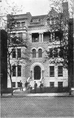 Sherman's father died suddenly in 1829, leaving his mother to care for 11 children.[4] Several of the oldest children, including Sherman's older brother William Tecumseh Sherman, were fostered with nearby relatives, but John and his brother Hoyt stayed with their mother in Lancaster until 1831.[4] In that year, Sherman's father's cousin (also named John Sherman) took Sherman into his home in Mount Vernon, Ohio, where he enrolled in school. The elder John Sherman intended for his namesake to study there until he was ready to enroll at nearby Kenyon College, but Sherman disliked school and was, in his own words, "a troublesome boy".[5] In 1835, he returned to his mother's home in Lancaster.[6] Sherman continued his education there at a local academy where, after being briefly expelled for punching a teacher, he studied for two years.[7]