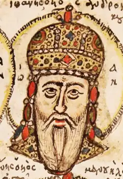 John V Palaiologos or Palaeologus (Greek: Ἰωάννης Παλαιολόγος, romanized: Iōánnēs Palaiológos; 18 June 1332 – 16 February 1391) was Byzantine emperor from 1341 to 1391, with interruptions. His long reign was marked by constant civil war, the spread of the Black Death and several military defeats to the Ottoman Turks, who rose as the dominant power of the region.