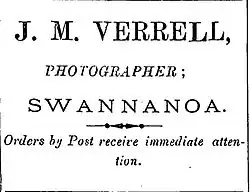 Verrall first settled in Ohoka, where he bought some land. In 1893, he sold up and moved to the nearby Swannanoa.[2] During his time in Swannanoa, he advertised as a photographer using the surname Verrell.[4]