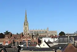 Aerial view of St Mary's church, Saffron Walden, Essex -