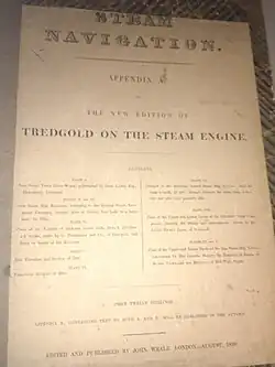 - Steam Navigation, Tredgold on the Steam Engine, Appendix A, edited and published by John Weale, London, 1839