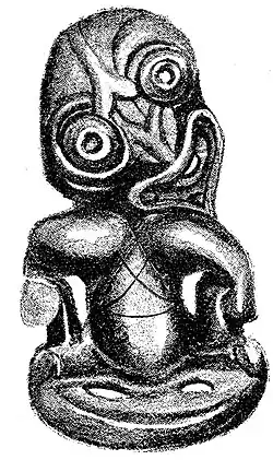 Sketch of a hei-tiki, from John White, The Ancient History of the Maori