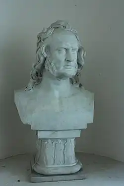 In 1865 a statue by Sir John Steell was erected to his memory in Princes Street Gardens. The bronze figure stands on a substantial stone pedestal and is located between the Royal Scottish Academy and the Scott Monument.