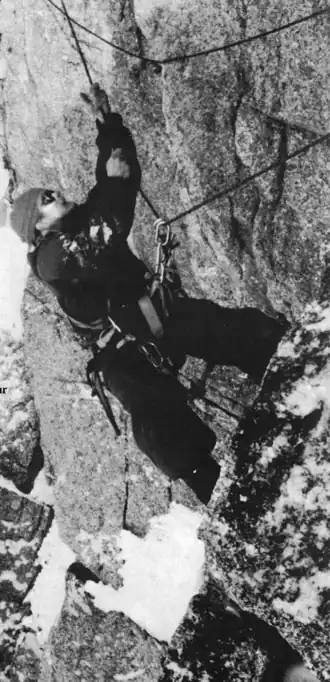 {{cite web}}: CS1 maint: bot: original URL status unknown (link) CS1 maint: location (link) - ^ Randall, Glenn (1984). Breaking Point. Denver, CO: Chockstone Press. pp. 126–128. ISBN 978-0960945238.
