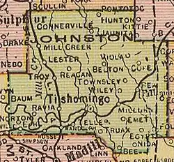 - ^ a b c d e f g h i j k l m O'Dell, Larry. "Johnston County," Encyclopedia of Oklahoma History and Culture, Oklahoma Historical Society, 2009. Accessed April 4, 2015.