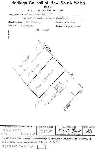 4. ^ "Terrace of Three Houses, 23-27 Johnston St, Windsor, NSW, Australia (Place ID 3149)". Australian Heritage Database. Australian Government. Retrieved 5 September 2018.